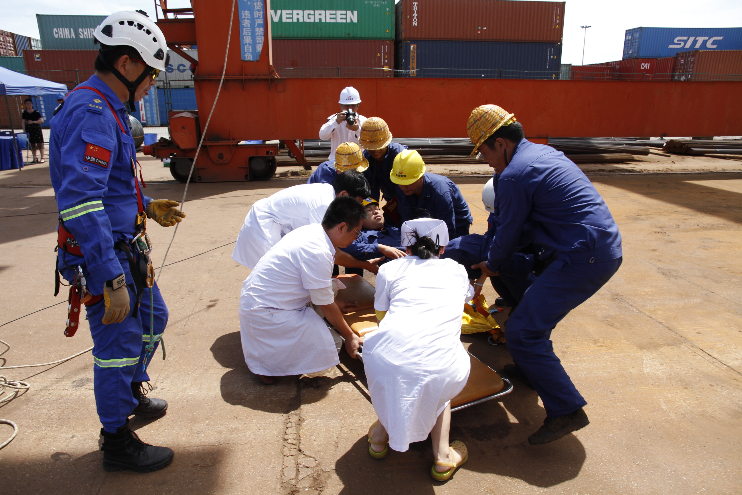 在藍(lán)天救援隊救援的同時,長沙新港董事、副總經(jīng)理辛華接受電視臺采訪:強(qiáng)調(diào)這次演練的目的是交通集團(tuán)安全生產(chǎn)月的一個重要的部分,新港公司的生產(chǎn)作業(yè)特點是室外作業(yè)同時也是臨水高空起重特種作業(yè),它的風(fēng)險和危險源情況復(fù)雜,安全管控要求比較高,在建立自身演練自救的基礎(chǔ)上將通過這次演練,借助社會專業(yè)救助力量,對一些急難險重的緊急情況進(jìn)行處置并能夠最大限度的控制次生災(zāi)害的發(fā)生,降低財產(chǎn)損失和人員傷害。