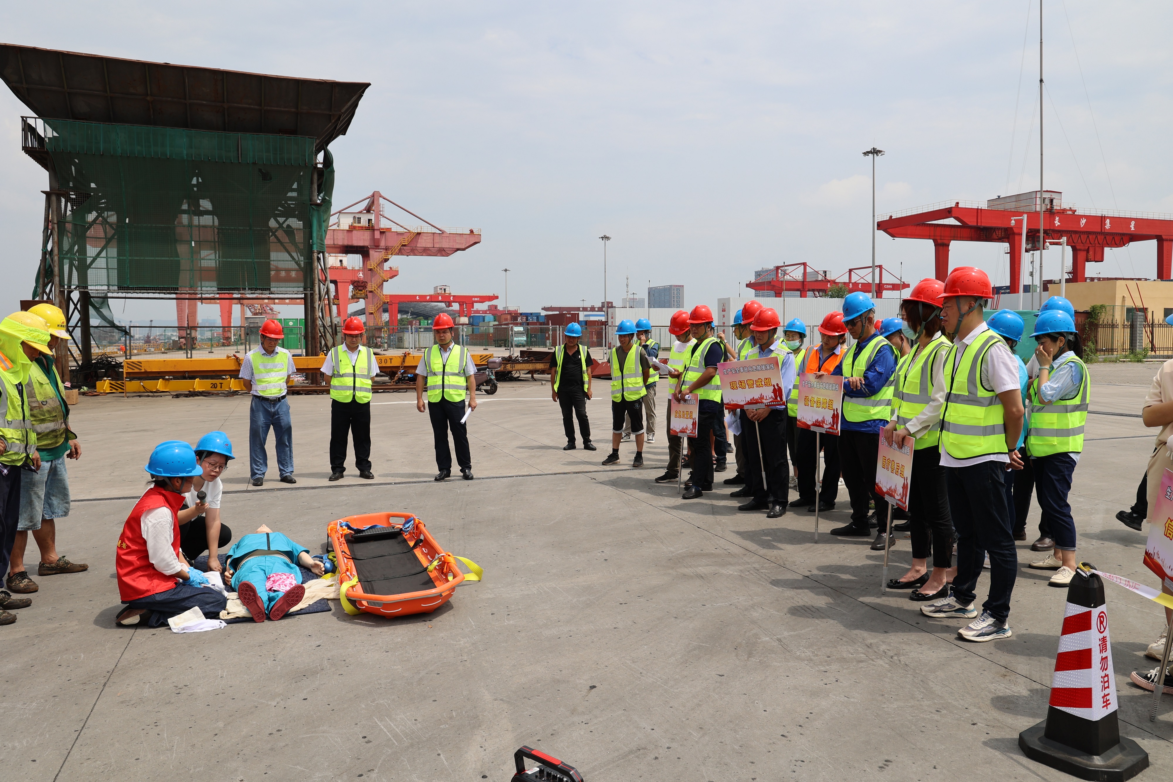 長(zhǎng)沙新港開展生產(chǎn)安全事故應(yīng)急救援演練 6月29日上午10時(shí),湖南長(zhǎng)沙新港有限責(zé)任公司在南片區(qū)碼頭開展了生產(chǎn)安全事故應(yīng)急救援演練,模擬冷軋卷鋼在下河作業(yè)過程中發(fā)生吊帶斷裂,造成人員受傷和貨物受損的安全事故。公司黨委副書記、總經(jīng)理辛華任演練總指揮,副總經(jīng)理張韜任演練副總指揮,副總經(jīng)理周明德任演練現(xiàn)場(chǎng)總指揮,同時(shí)參演的還有各部室負(fù)責(zé)人、各應(yīng)急救援小組成員、生產(chǎn)作業(yè)班組,并邀請(qǐng)了藍(lán)天救援隊(duì)的專業(yè)老師進(jìn)行心肺復(fù)蘇、骨折包扎、傷員搬運(yùn)等現(xiàn)場(chǎng)教學(xué)。整個(gè)演練過程按應(yīng)急救援預(yù)案展開,應(yīng)急處置組、現(xiàn)場(chǎng)警戒組、設(shè)備保障組、醫(yī)療善后組、信息后勤組5個(gè)救援小組分工明確,妥善應(yīng)對(duì),圓滿地完成了此次演練。演練結(jié)束后,公司領(lǐng)導(dǎo)進(jìn)行了點(diǎn)評(píng),通過這次演練檢驗(yàn)了應(yīng)急響應(yīng)人員對(duì)應(yīng)急預(yù)案、執(zhí)行程序的了解程度和實(shí)際操作技能,明確了各自的崗位與職責(zé),提高了全員的安全意識(shí)。在實(shí)際工作中,大家要更重視生產(chǎn)一線的現(xiàn)場(chǎng)監(jiān)督、管控,注重生命安全,堅(jiān)持以人為本、生命至上的原則,確保安全生產(chǎn)。    (本文圖片為模擬現(xiàn)場(chǎng),為仿真人物道具) |