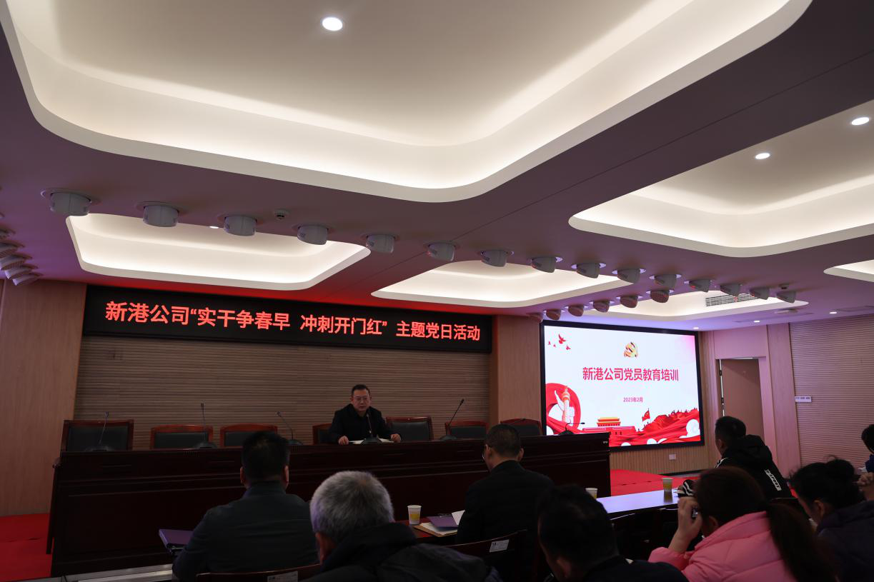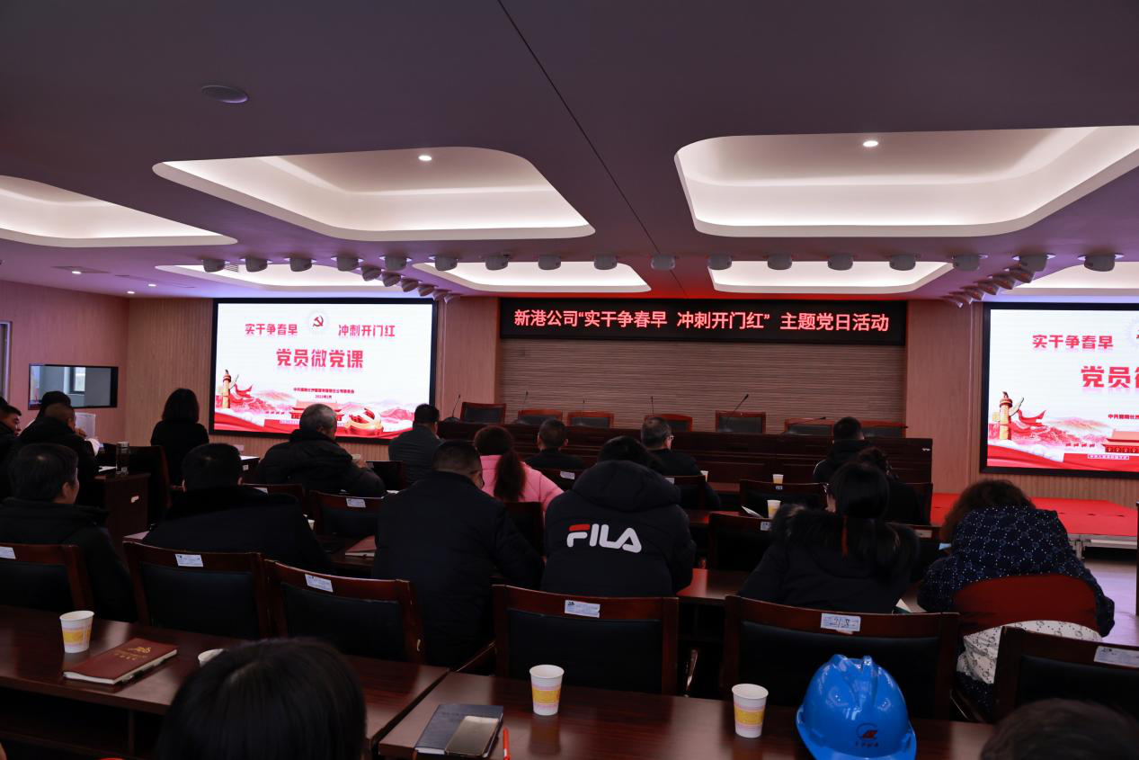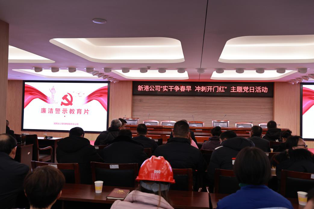 實干爭春早 沖刺開門紅 中共湖南長沙新港有限責任公司委員會主題黨日活動 為扎實擔當起學習宣傳貫徹黨的二十大精神排頭兵的光榮使命,教育引導廣大黨員干部從黨的二十大專題學習汲取精神力量,在新的一年里,進一步堅定理想信念,主動肩負時代重任,開啟新征程。2月17日上午,長沙交通集團新港公司開展學習貫徹黨的二十大精神“實干爭春早,沖刺開門紅”主題黨日活動,此次活動,以“微影片、微黨課、微實事、黨員教育培訓”等多種形式推動黨的二十大精神落地見效。公司黨委副書記、董事、總經理辛華作宣講,班子成員、公司中層管理人員、各支部黨員共76人參加活動。 深學悟初心-【微影片】 全體黨員干部集中觀看2022年度湖南反腐警示片《忠誠與背叛》。通過觀看警示教育片,引導黨員上好廉潔教育“新年第一課”,教育全司廣大黨員干部面對誘惑要保持清醒的頭腦,自覺抵制各種腐敗現(xiàn)象的侵蝕,牢固樹立正確的人生觀、利益觀和權力觀,干干凈凈做事,老老實實做人。  篤行求實效-【微黨課】 學理論之思,踐初心之行。新港公司以“實干爭春早,沖刺開門紅”為主題,從七個黨支部里的推選黨員干部帶頭講,鼓勵黨員人人上臺講【微黨課】,突出“微”這個形式,聚焦“黨”這個靈魂,利用“課”這個載體,教育廣大黨員從不同層面、不同角度深刻領會黨的理論創(chuàng)新成果,以新思想、新觀念、新思路、新舉措,開創(chuàng)公司高質量發(fā)展新局面。