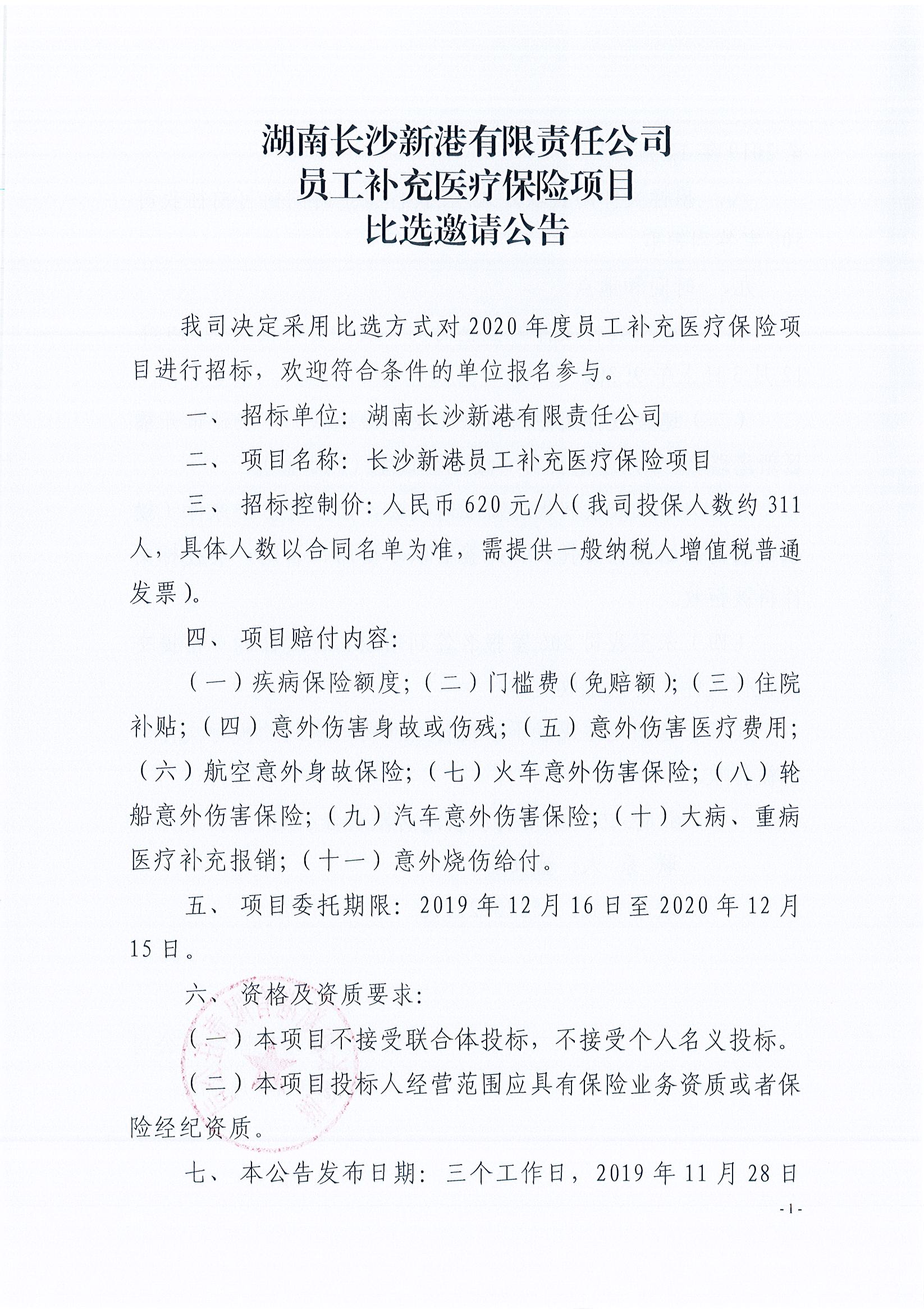 湖南長沙新港有限責(zé)任公司員工補充醫(yī)療保險項目比選邀請公告