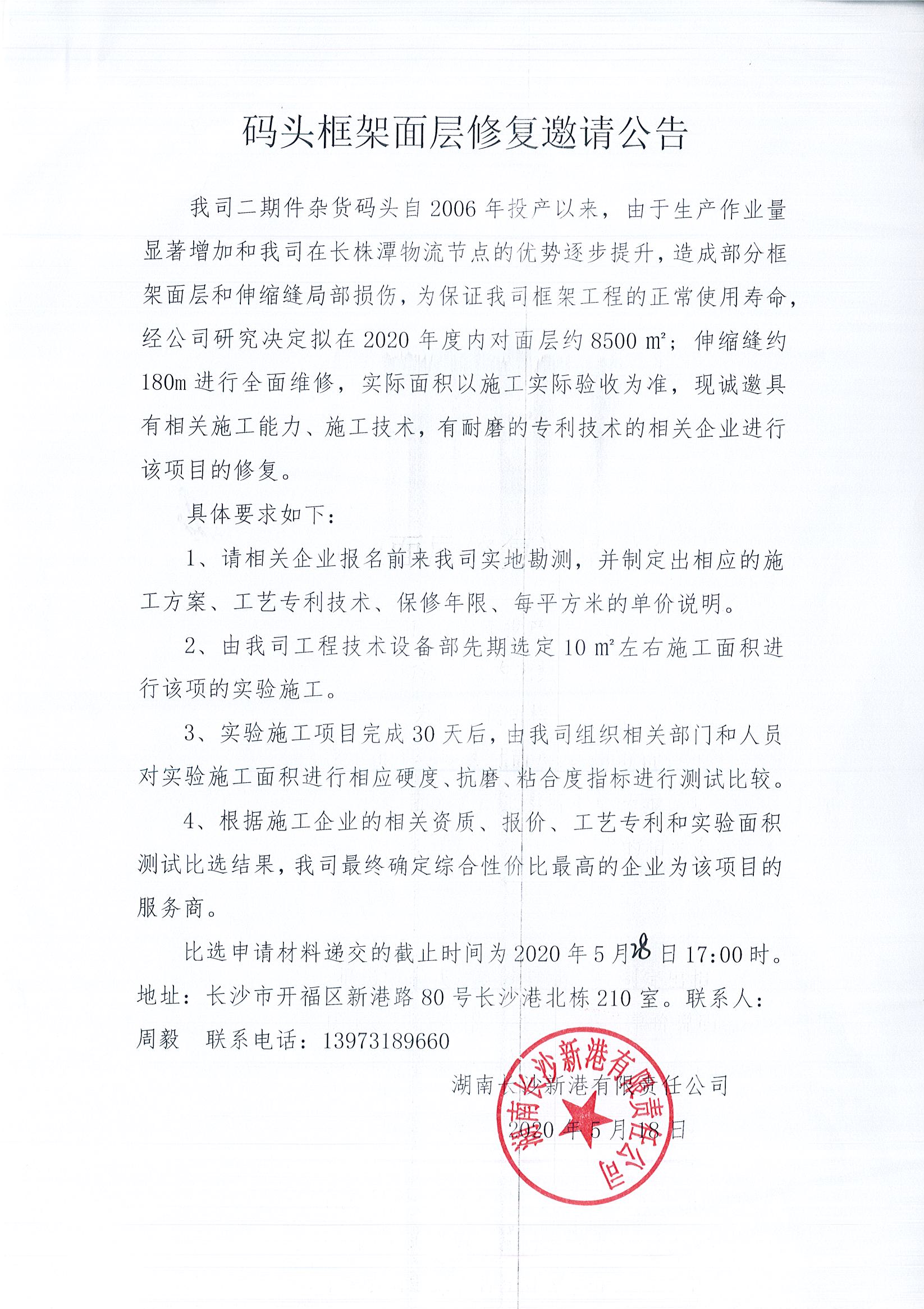 碼頭框架面層修復(fù)邀請公告
