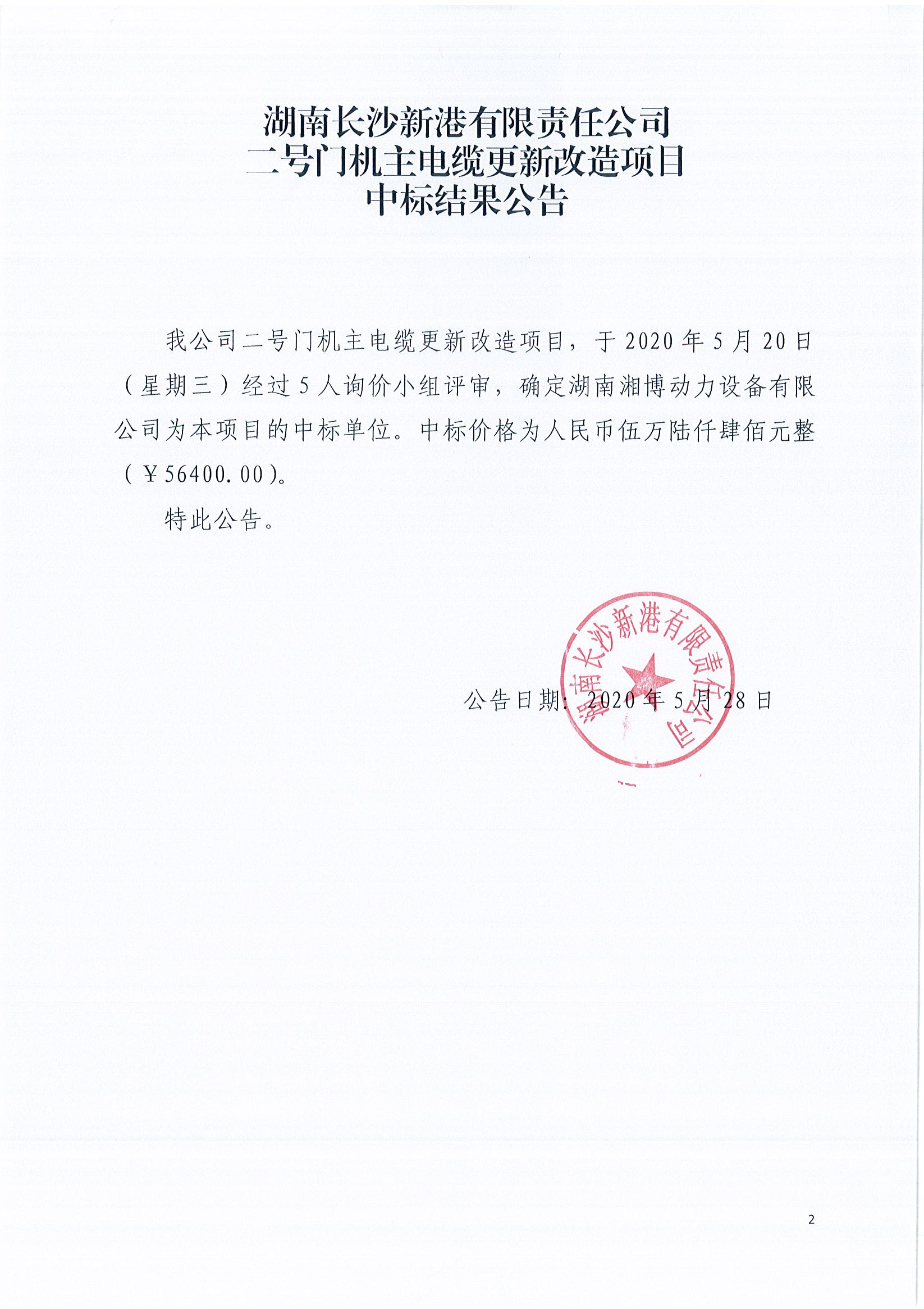 二號(hào)門機(jī)主電纜更新改造項(xiàng)目《中標(biāo)結(jié)果公告》