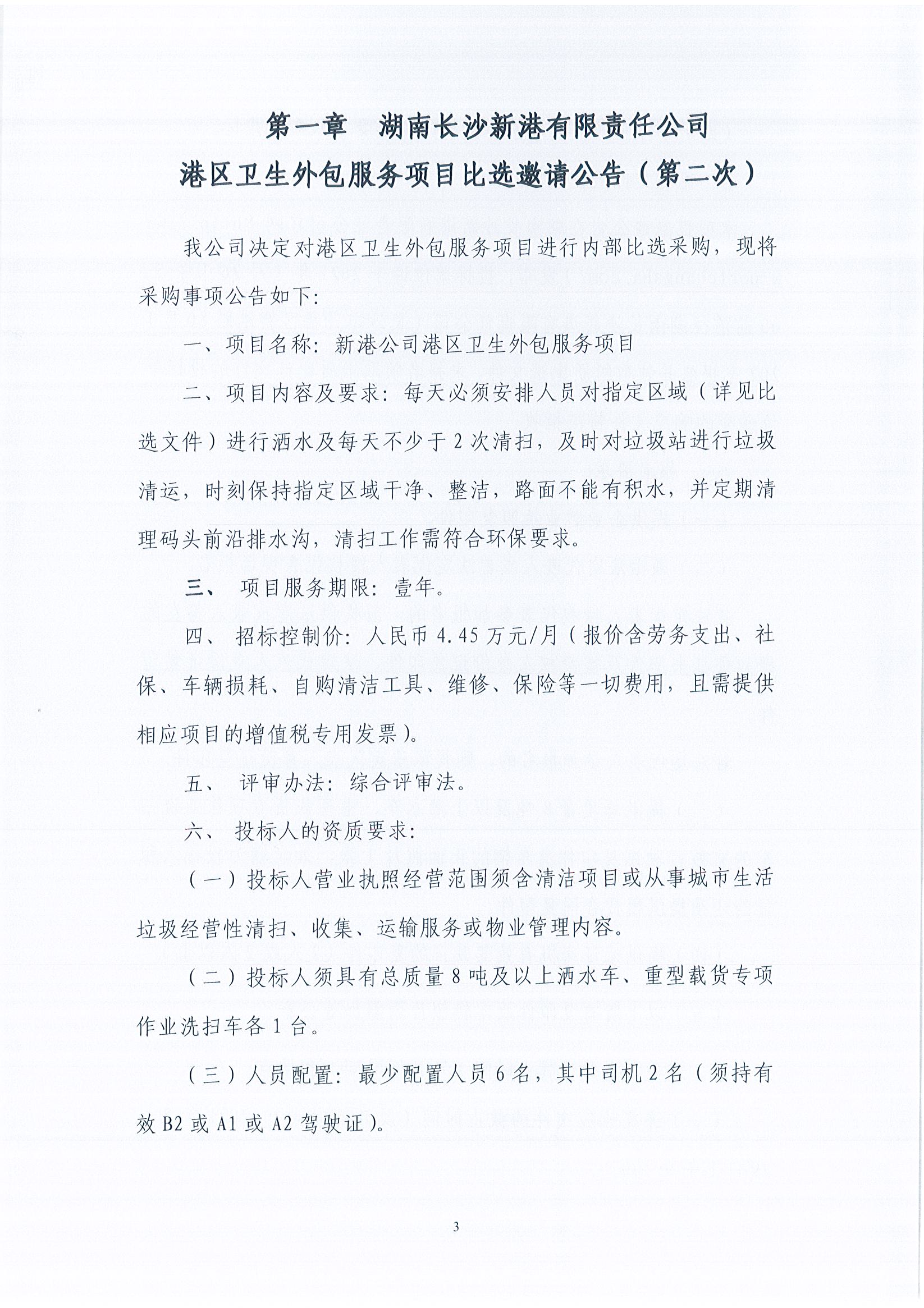 湖南長沙新港有限責(zé)任公司港區(qū)衛(wèi)生外包服務(wù)項(xiàng)目比選邀請(qǐng)公告(第二次))